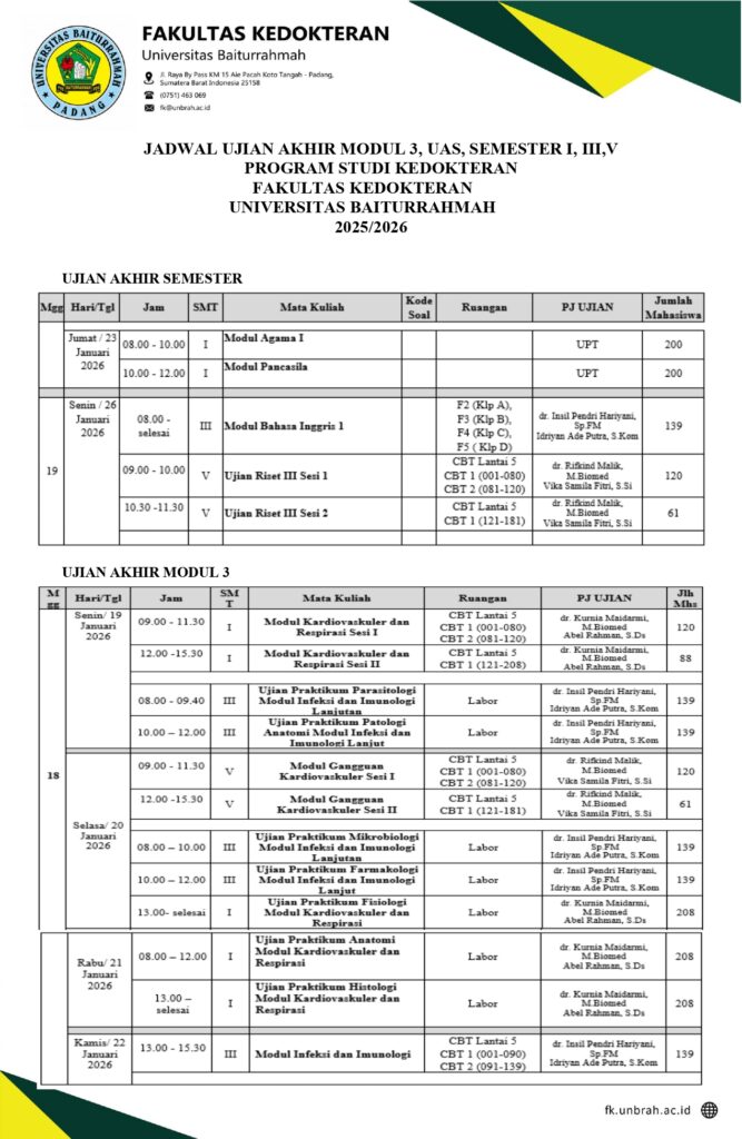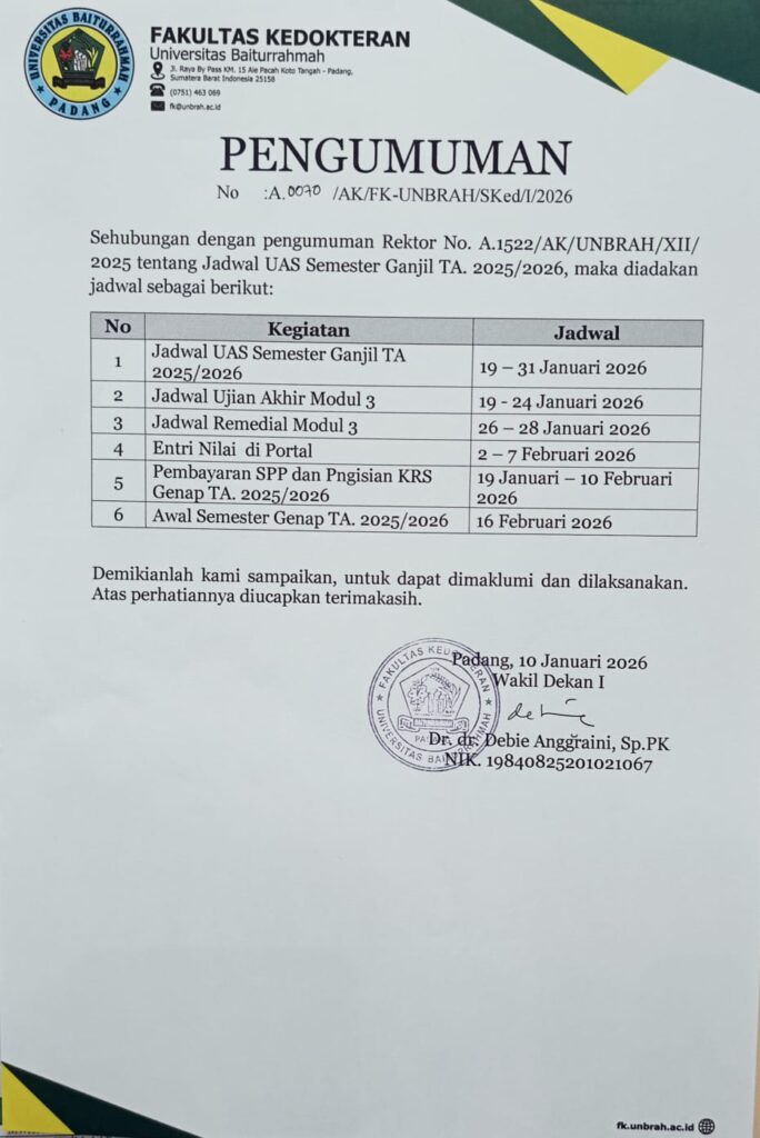Fakultas Kedokteran Universitas Baiturrahmah (FK UNBRAH) secara resmi menjalin Perjanjian Kerja Sama Tripartit dengan empat rumah sakit daerah di Sumatera Barat, yaitu RSUD M. Natsir Solok, RSUD Ahmad Syafii Maarif Sijunjung, RSUD Dr. Muhammad Zein Painan, dan RSUD dr. Rasidin Padang. Kerja sama ini merupakan langkah strategis dalam memperkuat sinergi antara institusi pendidikan, rumah sakit, […]