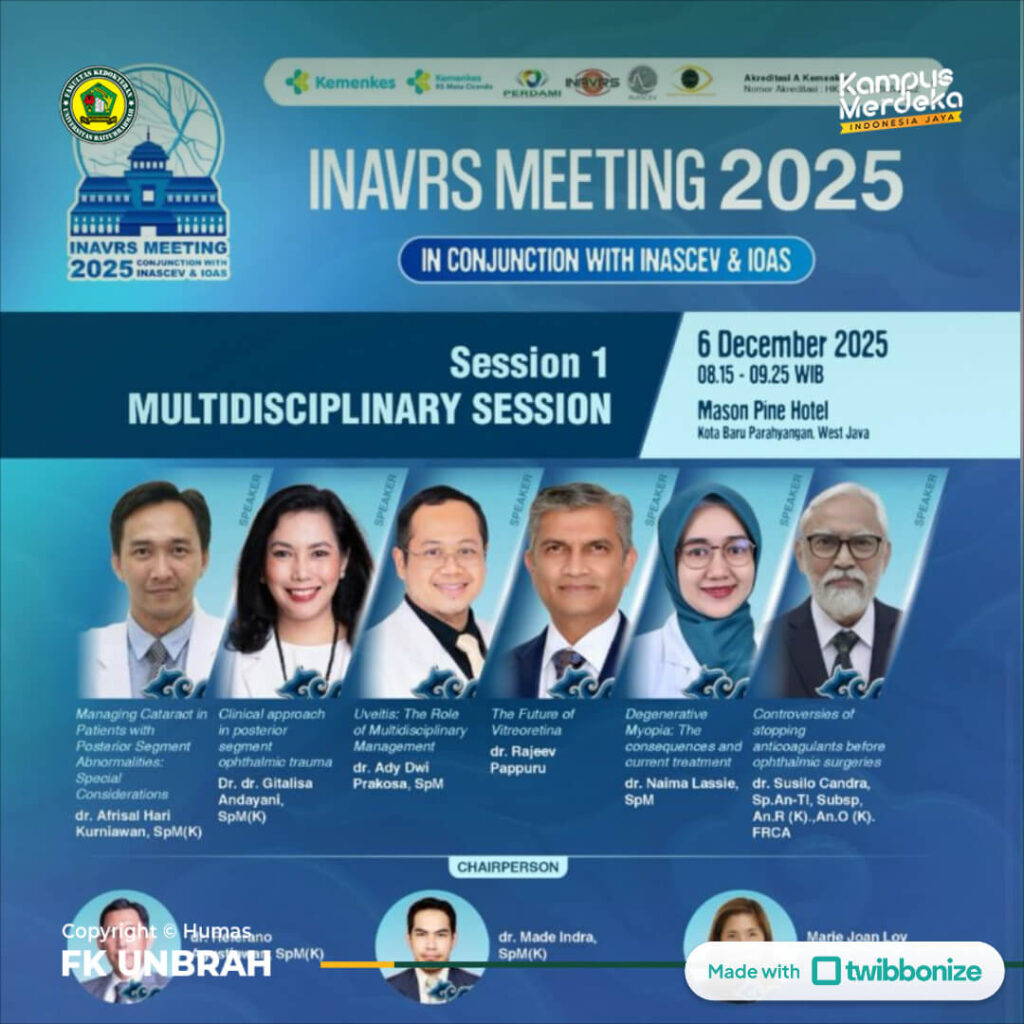 Keikutsertaan dr. Naima Lassie, Sp.M dalam INAVRS Meeting 2025 diharapkan menjadi motivasi bagi sivitas akademika FK Unbrah untuk terus berkembang, berinovasi, dan berkontribusi dalam dunia kesehatan Indonesia.